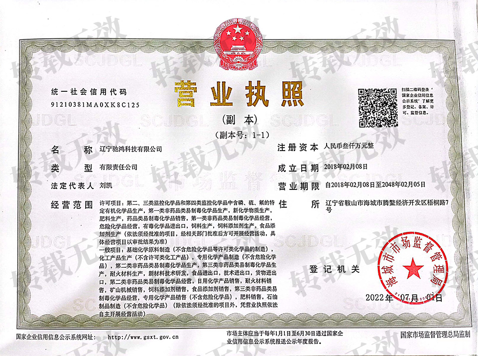 遼寧馳鴻科技有限公司成立于 2018 年 2 月,是集選礦藥劑的研發(fā)、生產(chǎn)、銷(xiāo)售、服務(wù)于一體的新興企業(yè)。公司坐落于遼寧省鞍山市騰鰲精細有機新材料化工產(chǎn)業(yè)園內,距沈大高速口 3 公里,毗鄰營(yíng)口港、大連港,交通十分便利。公司擁有雄厚的資金,注冊資本 3000萬(wàn)元,實(shí)際投資 1.8 億元。子公司營(yíng)口富興礦物質(zhì)有限公司、營(yíng)口富興飼料添加劑有限公司均位于營(yíng)口境內。公司年產(chǎn)量為 8 萬(wàn)噸,主要產(chǎn)品有硫酸銅、硫酸鋅、黃藥系列、黒藥系列、硫氨酯、起泡劑、等選礦藥劑。